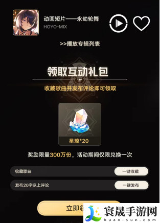 2、选择登录进入到活动页面里面,在此就能选择收藏专辑,领取20星琼奖励。