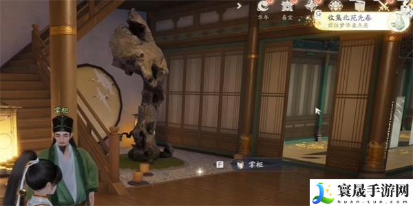 2、接着我们完成第一章主线任务之后,就和这个掌柜进行对话。