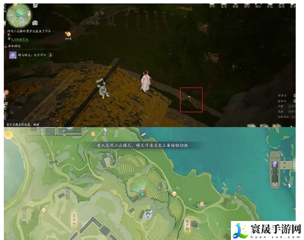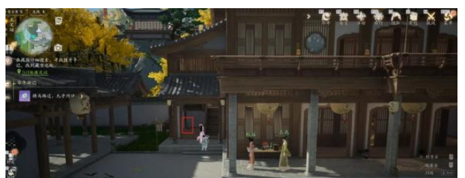 在中都城内勾栏最里面的屏风后面,挨着河,记住要装上藏宝图。