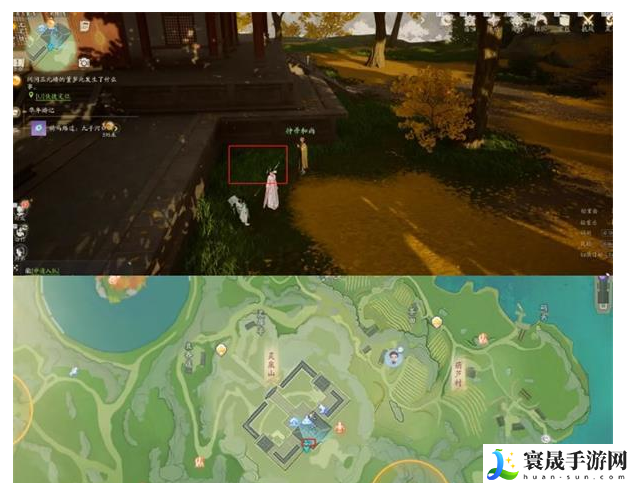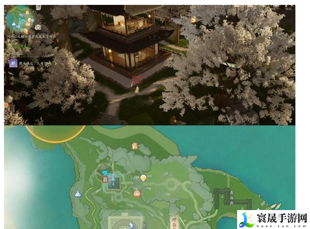 携带上藏宝图9,到见春停左侧,石子路上挖取,具体看上图鸟瞰图~