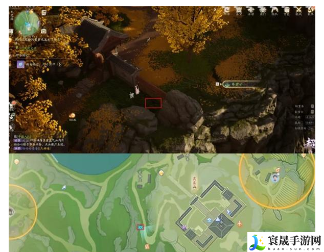 携带上藏宝图7,来到灵水院后方,在扫地老僧旁挖取,坐标看上图~