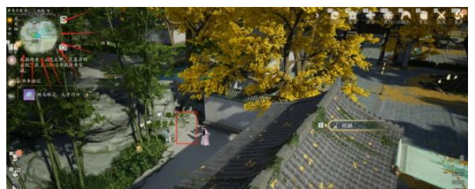 携带上藏宝图三,来到时务轩外左侧空地上,位置如图所示,挖掘!