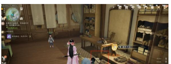 再到房间内,找到线索二(王二脚店房间,坐标看左上角小地图,房间里有个npc小石头)。