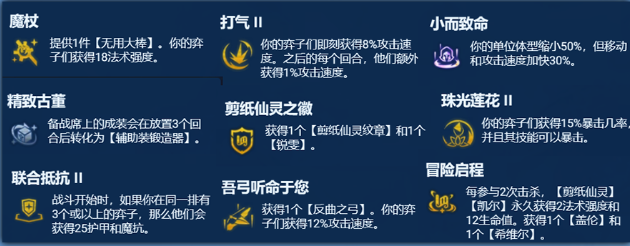 强化优先拿精致古董和剪纸仙灵转,以及其他对整体阵容有提升的海克斯,天使都能受到增益。