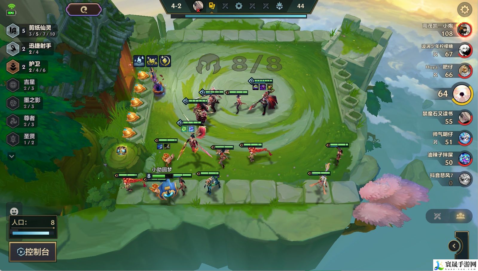 根据经济4-2或4-5拉8大d整体除5费卡两星,如果没转职经济特别好就直接上9,一般没刀妹可先用卡莎副c,没有7剪纸就找两星卡莎和两星加里奥稳血上9。
