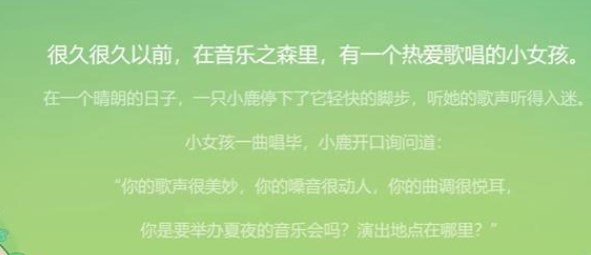 1、音乐之森里,一位热爱歌唱的小女孩,打算在这个夏夜,举办一场独特的音乐会。