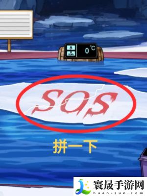 3、用地上的抹布擦干水渍,然后将两块浮冰拼接起来出现(sos)标志,然后选择去找企鹅。