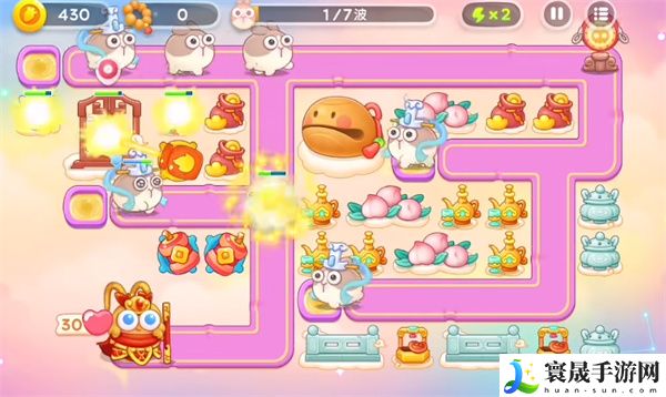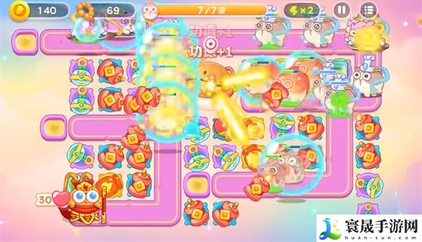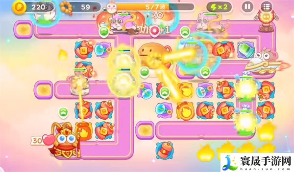 4、第五波继续放置炮台进行输出木鱼,暂时不用升级炮台。