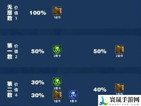 (30%)2费卡、(30%)1金币+3费卡、(40%)1金币