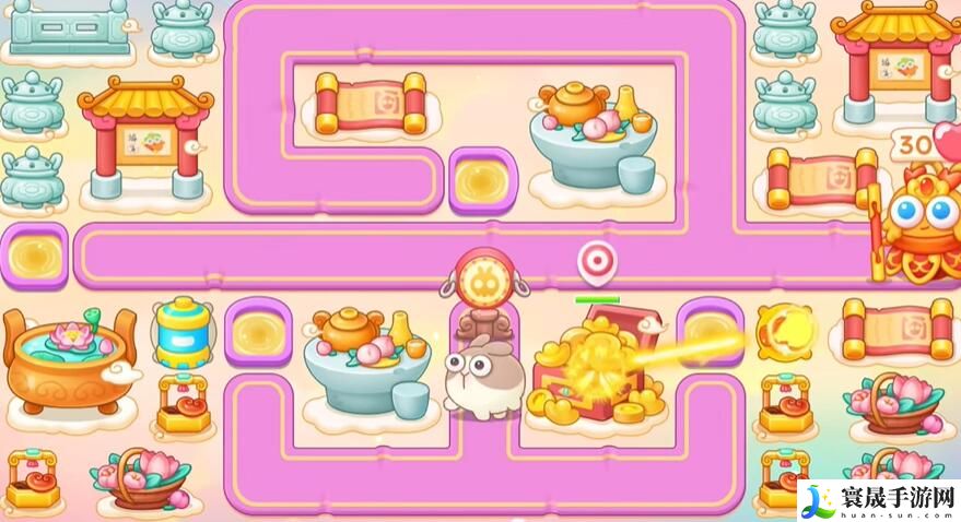 2、兔子跑到左上角,火炮打卷轴。