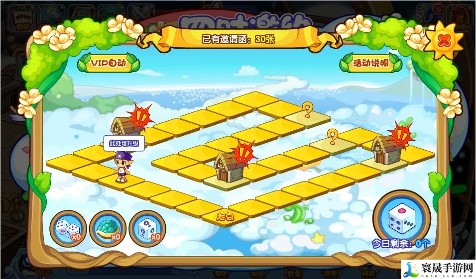 活动就是一个大富翁的玩法,小洛克们投掷骰子,出现的随机点数进行移动,每天有10次投掷机会。每投一次就会获得一张邀请函,抵达终点后可以获得20张邀请函。在最理想的初始状态下,一天能获得30张邀请函哦!升级之后则能获得更多邀请函!