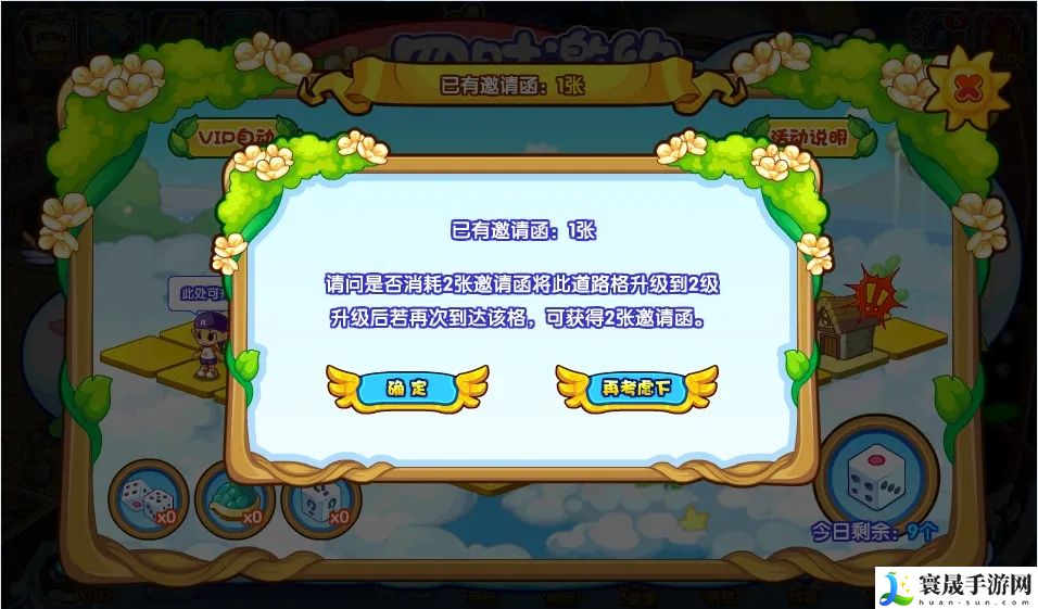 当然,在后续邀请函多了之后,小洛克们每经过一个格子,都会有“此处可升级”的提示:消耗两张邀请函升到2级,此后再次达到这个格子将获得两张邀请函。最高可以升到5级,最多一次获得5张邀请函。(注:升级数据每月1日重置,请小洛克们注意哦!)