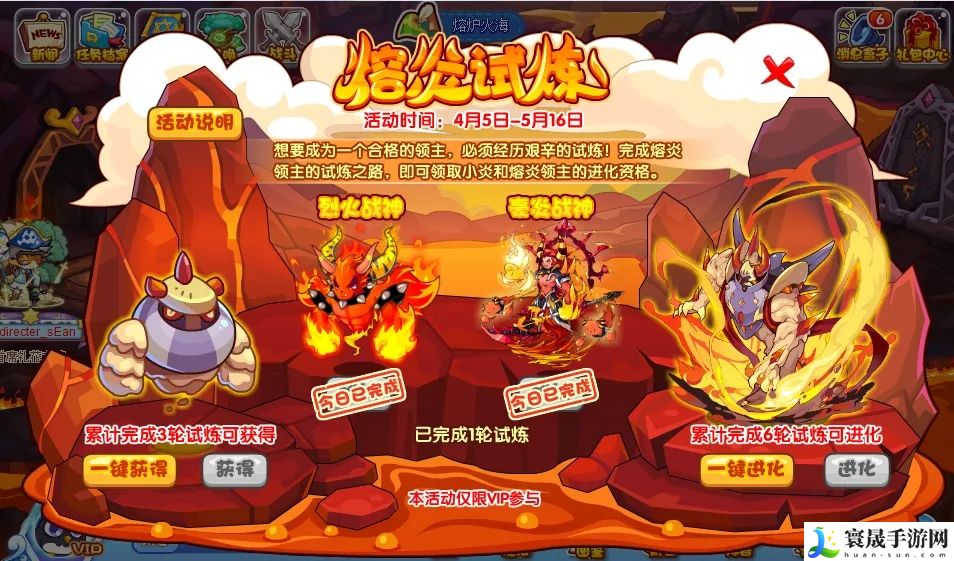 活动没什么弯弯绕绕的需要介绍,每天刷新两只BOSS,与之对战视作完成一次试炼。累计完成三次试炼可以领取:小炎;累计完成六次则开启:熔炎领主的超进化资格!