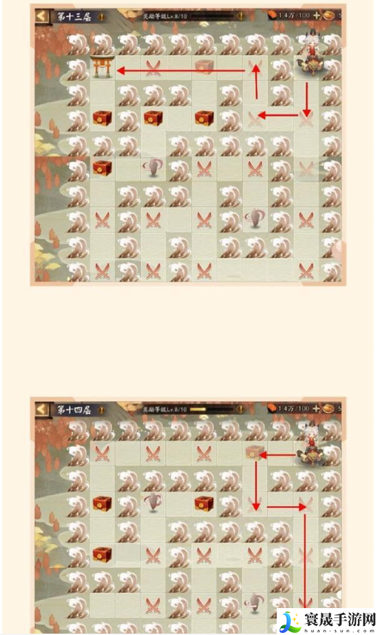 5.活动持续7天,爬塔从第20层开始满收益,所以前期要尽快升层,给手动的友友们做了路线图,挂樱饼会自动寻找最优路线。