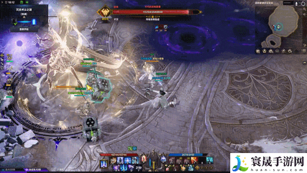 举例:BOSS空血时,发出了紫色的冲击波,则所有玩家要与紫色球体互动;