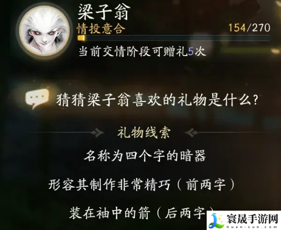 礼物线索三:名称为四个字的暗器,形容其制作非常精巧(前两字),装在袖中的箭(后两字)。