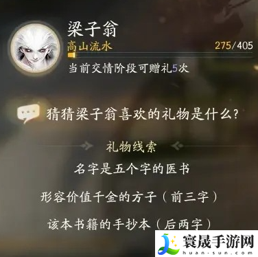 以上就是小编整理带来的射雕手游梁子翁最喜欢的礼物分享,更多相关游戏攻略,请点击关注本站!