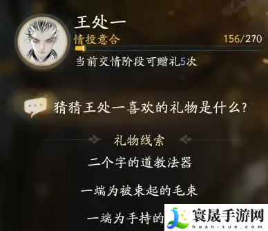 以上就是小编整理带来的射雕手游王处一最喜欢的礼物一览,更多相关游戏攻略,请点击关注本站!