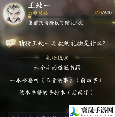 射雕手游王处一最喜欢的礼物都有哪些?游戏中不同的角色喜欢的物品都不同,有玩家想知道王处一喜欢的礼物是什么,那么小编下面就来分享下王处一最喜欢的礼物,赶快一起来看看吧。