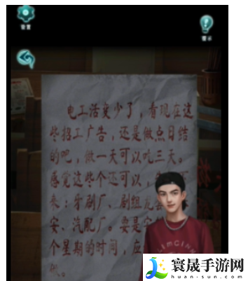 13、返回招待所,查看招待所墙上的兼职广告,根据兼职工作线索和兼职广告得到失物招领箱的密码为3752,获得保险丝。