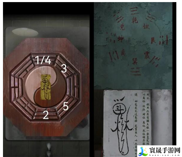 4.卫生间:镜子处,先放镇坛木、然后八卦盘、然后黄符,点击离坎坤离乾位解救小杨。