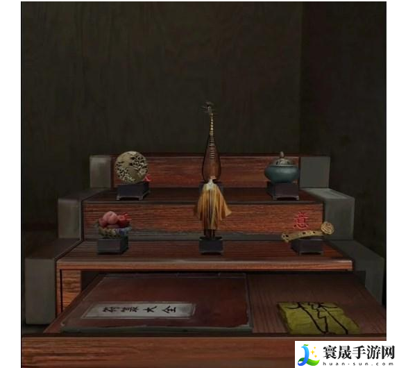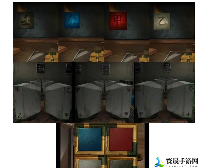 3.卧室:书柜处根据上面柜子的盆栽打开抽屉得到白色碎片 ,下面柜子摆放摆件得到黄符和符箓信息,左下角箱子根据外面木龛里的盛海通宝财按下对应的字打开得到镇坛木,书桌打开灯,把黑蓝红白碎片放在灯下得到信息,根据网吧电脑上信息把碎片放在盒子里得到感应卡。