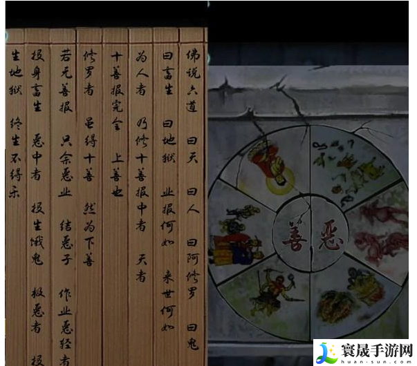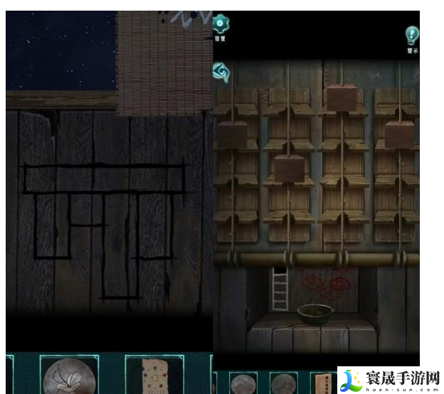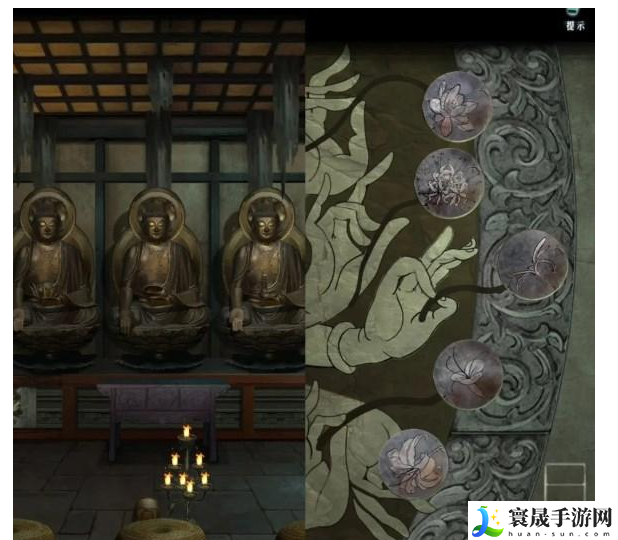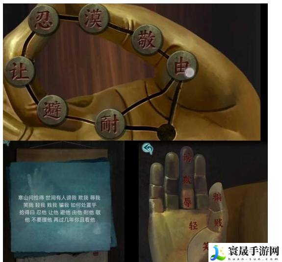16.地下室:左边墙上棋盘完成游戏,放入玉鸽,塔中间根据之前几个地方的提示移动打开,盒子内放上木鱼眼得到舍利子,右边墙边灯塔根据竹简打开机关,地上石碑信息移动四个石块打开机关后放入舍利子打开门。