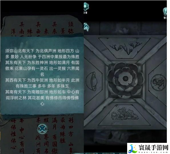 3.一楼:大殿中间蒲团的木鱼按照顺序点击〖左1457右236〗得到木鱼眼。