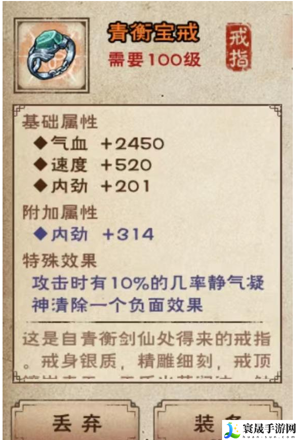 17.在(4,12)对话张洞灵,获得10声望、1w阅历、5两,100级橙戒【青衡宝戒】。