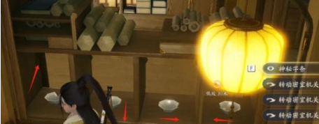 1、屋子左边有屏风、纸条和碗的房间就是密室入口。