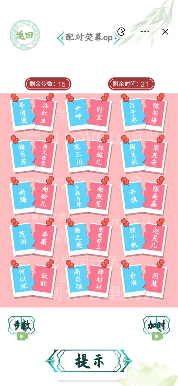 好了,现在大家只需要15步就能完成所有的人物CP配对了!