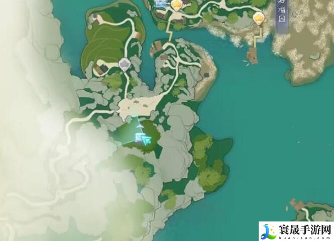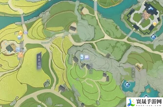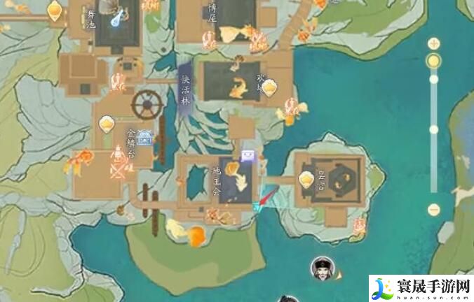 3、第三个宝箱在玉河台位置的树下,旁边有个钓鱼点。