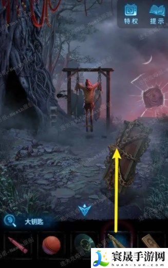 16、到初始场景,使用【大钥匙】打开大锁,进入卧室。16