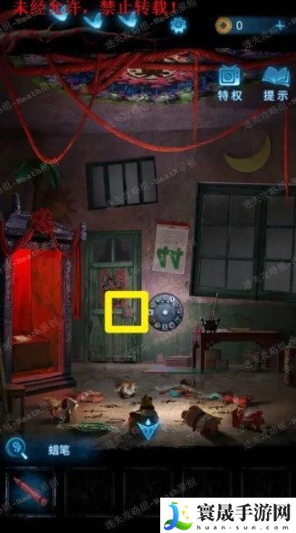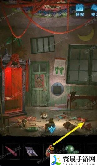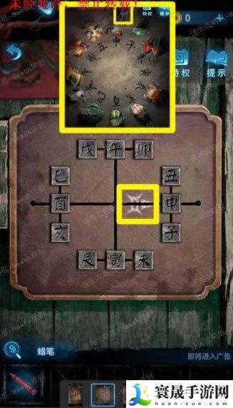 2、点击绿色门上的门锁,观察门锁上戟的图案,根据玩具中拿戟的玩具,可以判断12甲子在门锁上的位置,如下图所示,完成后打开门在人偶手里拿走【糖】。22.1