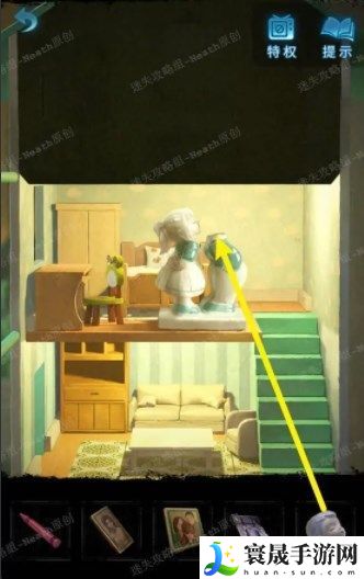 18、给唱片机换上新的【唱片】,点击纸人开始运动,拿走右边屋子里的【全家福】。18 18.1