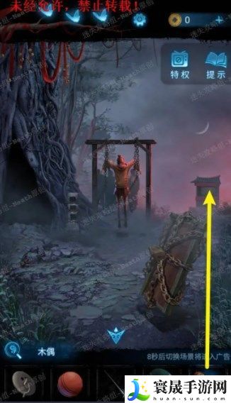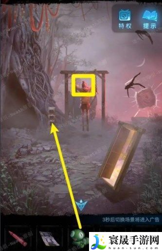 13、到初始场景,把【木偶】挂在远处的小戏院里,进入裂缝。13