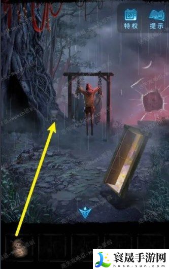 20、进入左边门,点击黄色雨伞下的机关,拿走左下角的【小人头】。20