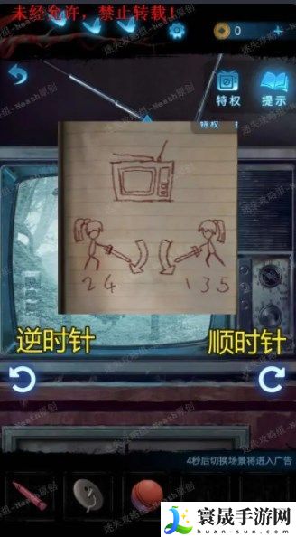 6、根据笔记本里的内容,按逆、顺、逆、顺、逆的顺序调整电视的旋钮,在调整过程中画面变化就立刻停下,记住右上角的数字和对应的画面并根据顺序得到一组数字37561,完成后记得取下【铁条】。66.1