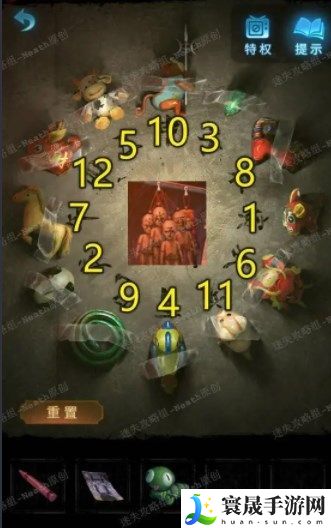 7、回到玩具场景,按照37561的顺序点击圆盘上的数字,拿走【奘铃】和【照片】。7