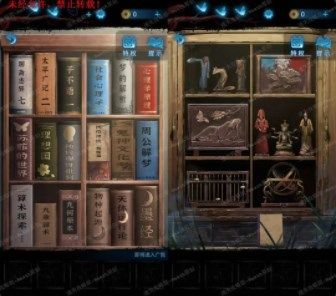 28、进入卧室,把【书】放到书柜上,根据裂缝里的书柜,对书进行排序,第一格逻辑:人偶和动物造型像阿拉伯数字,第二格逻辑:颜色,第三格逻辑:物品形状,第四格逻辑:宗教对应书籍,第五格逻辑:算盘上表示的数字,第六格逻辑:月亮图案的高低,完成后拿走《民俗传统》书本上的【小方块】。2828.1