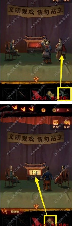 27.使用【望远镜】观察戏台。 27