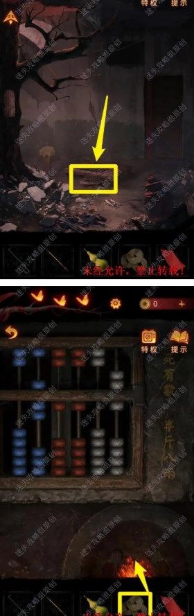 6.根据洞口中灵幡的线索,将算盘调整为下图所示样子,获取【纸风车】和【纸灰】。 6 6.1