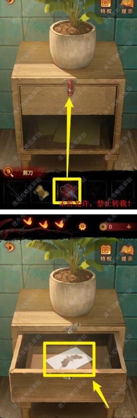 43.使用【剪刀】剪开抽屉上的红线,获取其中的【卡片】。 43 43.1