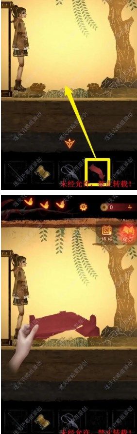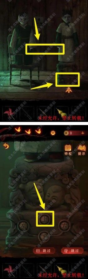 21.根据此思路,此后的正确选项为:下,上,下。解开谜题后,获取【纸钱】。并将【纸风车】交给女童,获取【红纸】。 21