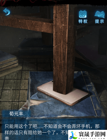 3、钟梓萱将手机给到男主,之后可以使用手机了。点击地板上的洞,将木偶头扔下去。