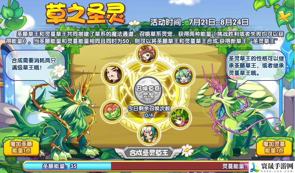 本活动需要考验小洛克们一些计算能力,挑战不一定要成功!时刻关注两遍能量的变化从而调整作战方针!只要圣藤与灵蔓能量均达到50就可以开启:圣灵草王合体!