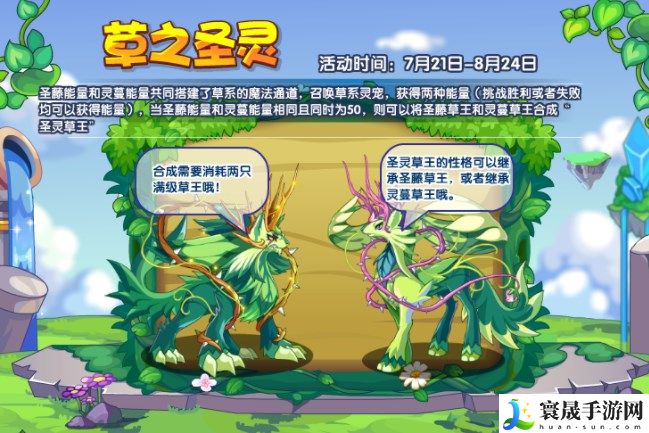 注:圣灵草王可以继承圣藤草王或灵蔓草王性格。合成需要圣藤草王、灵蔓草王均满级,且消耗两只草王。