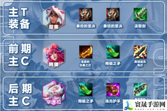 中期多余坦度装备给予锤石,后期可转给瑟提,或者瑟提选秀捡*装。