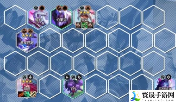 升7人口后,补约里克开2擎天卫与2夜幽羁绊来增强锤石双抗与阵容大部分棋子护盾(记得站夜幽格子)。