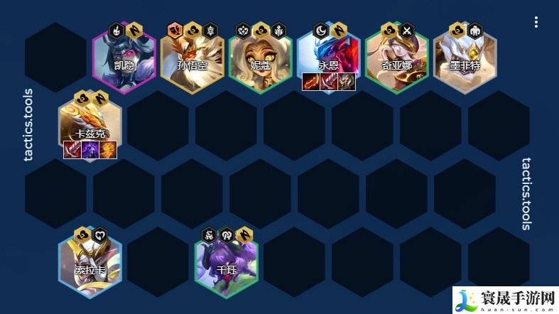 备选:永恩之前太弱了很多时候大家这套都是用奶妈当副C,后来奶妈被砍废了,永恩多次加强算是不错的副C,如果永恩没有三星也可以给凯隐带装备,饮血泰坦凯隐都是可以用的,再补任意输出装备给到凯隐就行。